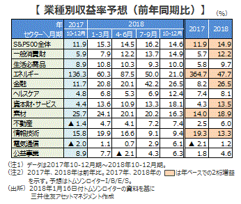 ■2018年も2桁の増益が続く見通しです。米国企業を取り巻く環境は引き続き良好ですが、直近の業績見通