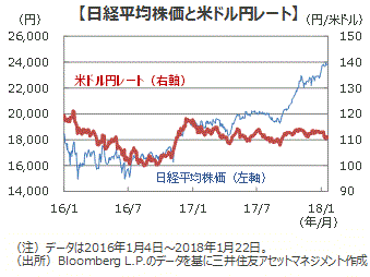 ■国際通貨基金(IMF)は22日に2018年の世界経済の成長率見通しを3.7%から3.9%に引き上げました。世界景気回復や企業業績の好調を背景に、日経平均株価は昨年9月以降上昇基調が続いています。