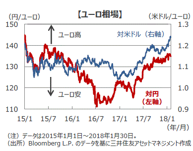 ■ユーロ圏の12月の消費者物価指数は前年同月比+1.4%でした。欧州中央銀行(ECB)が目標とする+2%近傍を下回っているものの、需給ギャップの縮小や原油価格の上昇により、今後は上昇率が緩やかに高まってくると考えられます。