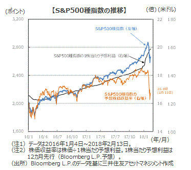 ■S&P500種指数は1月26日に終値ベースで史上最高値の2,872.87を記録した後、2月8日の2,581.00まで10.2%下落しました。