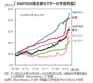 ■ただ、米税制改革決定後、予想利益が顕著な上方修正となって、バリュエーションを16倍台まで引き下げている点は注目されます。好景気と堅調な業績が株価を十分支えると考えられます。