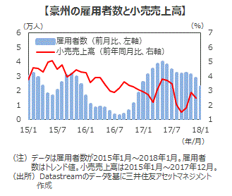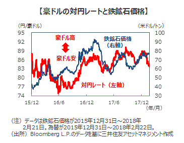 ■足元の豪ドルの対円相場は、米国の金利上昇を契機とするリスク回避の動きの強まり等から、軟調な展開となっています。しかし、雇用、消費が改善傾向にあることや、資源価格が持ち直してきたこと等から、やがて堅調さを取り戻すと見られます。