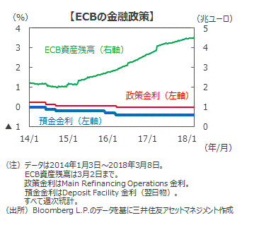 ■金融政策の正常化を進めるうえでは、景気に加え、政治面の安定性も重要となります。イタリアの選挙結果は概ね市場の想定通り、ドイツの政治も連立政権の発足が固まった現在が、緩和姿勢を微調整するのに適した時期と捉えたと考えられます。