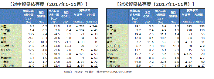 ■貿易摩擦の高まりは、中国の経済成長の恩恵を貿易で享受するアセアン諸国にとっても懸念材料です。アセアンの輸出に占める中国のウエイトは12.9%、対中貿易依存度は名目GDP比で4.6%と比較的高くなっています。ちなみに対米輸出のウエイトは13.1%、対米貿易依存度は4.7%と、米中貿易摩擦の成り行きには神経質にならざるを得ないと考えられます。