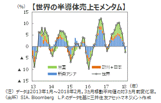 ■製造業の景況感がピークアウトしたのは、(1)2015年4月以降の改善が大きく進み、さらなる改善余地が限られていた、(2)半導体売上モメンタムが鈍化した、などが背景にあると考えられます。