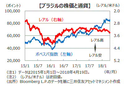 ■ブラジルの通貨レアルは、トランプ米政権が発動した鉄鋼関税を契機とした鉄鉱石価格の下落などを受け、対米ドルで一時約10カ月ぶりの安値水準を付けました。鉄鉱石価格は持ち直す可能性がありますが、レアルは、10月の大統領選挙を控えた政治の不透明感が強いこともあり、当面上値の重い展開が見込まれます。