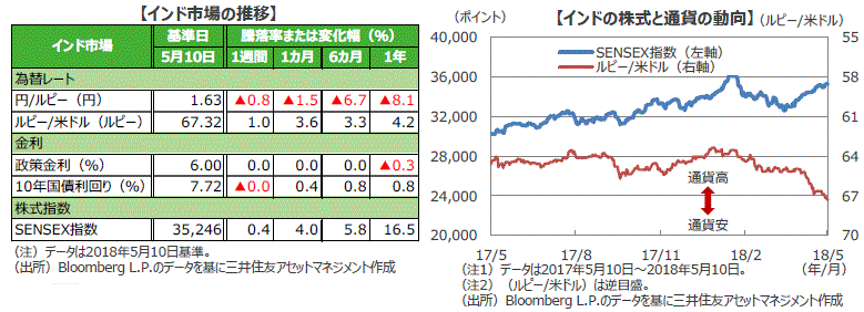 ■インドの株式市場は、過去最高値に接近していますが、経済改革に積極的なモディ政権の下で、景気加速に伴う企業収益の拡大基調が相場を支えると期待されます。今後はインド準備銀行の金融政策の方向性や、地方選挙を通じた与党インド人民党(BJP)に対する信任などが注目されます。