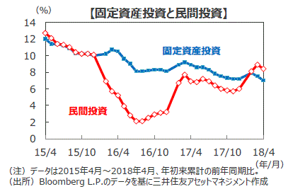 ■内訳をみると、全体の約6割を占める民間投資は同+8.4%と、1~3月(同+8.9%)から減速したものの、比較的高水準でした。