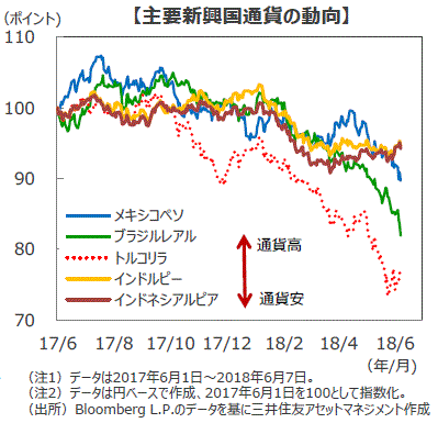 ■米国経済は好調で、今後も財政面のサポートにより、更に勢いが増すと見られます。世界第2位の中国経済も安定しています。こうした中、米連邦準備制度理事会(FRB)は緩やかに利上げを進める見込みです。FRBの利上げにより、新興国が資金を引き寄せるハードルは少しずつ高まっています。最近目立つ、新興国の通貨下落の要因は各国固有の問題もありますが、その背景には米国金利の上昇があります。