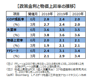 ■FOMC参加者による経済見通しも、18年のGDP成長率と物価上昇率が小幅に上方修正される一方、失業率は18年~20年ともに下方修正されています。物価については、「先行きの動向を注意深く見守る」との評価が、声明文から削除されました。