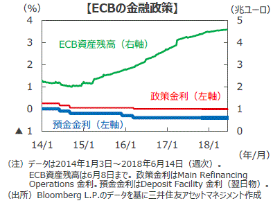 ■今後は、QE終了によるイタリア国債の金利上昇や、イタリアのポピュリズム新政権による財政悪化が懸念されることから、ECBは保有国債残高や政策金利の当面維持といったフォワードガイダンスを強化しました。また、ECBは保護主義の高まりもリスク要因と指摘しており、引き続きその行方に注目です。