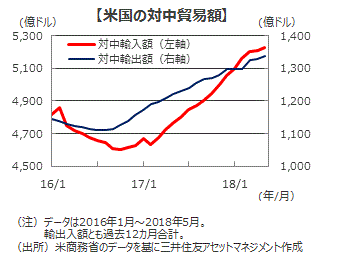 ■仮に、そうなれば、中国の対米輸出のほぼ全額に25%の関税が課せられることになります(米国の中国からの輸入額は、2017年実績で5,055億ドル)。中国もさらなる報復を辞さない構えであり、米中貿易摩擦は一段と激化する可能性があります。