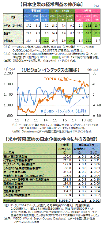 リスクは、さらに不確実性が高まることで、企業のセンチメントが悪化し、生産や投資が手控えられてしまうことです。米中間選挙まで、米国の保護主義的な通商政策がどの程度日本の企業マインドに影響するのか、企業業績の改善モメンタムは続くのか、といった点に注意を払う必要がありそうです。