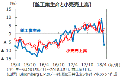 ■5月の鉱工業生産は、トラック運転手のストライキの影響で前年同月比▲6.6%と、4月の同+9.0%から大きく落ち込みました。10日間にわたった物流網のまひは一時的なショックとはいえ、6月の生産も影響を受けそうです。