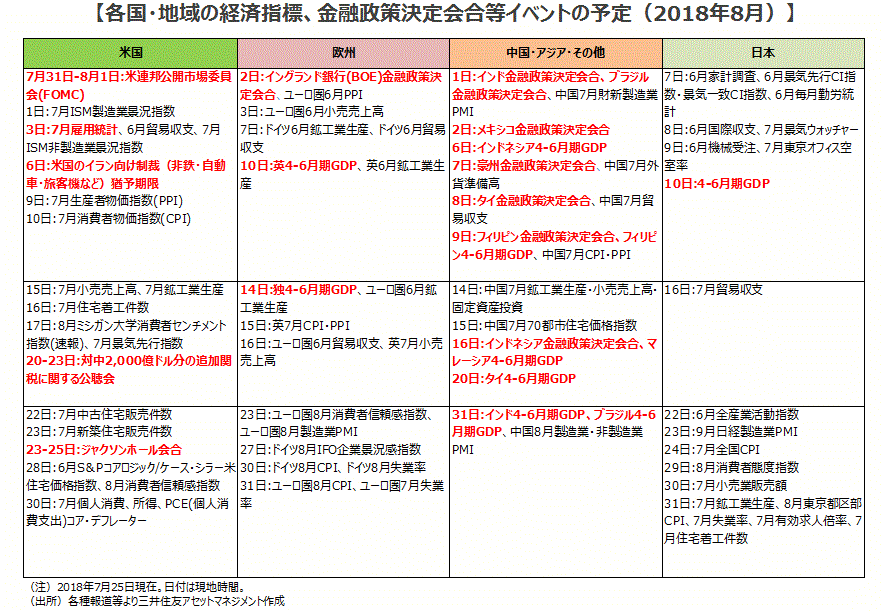 ■引き続き米国の対外政策について注目する必要がありそうです。6日は米国によるイラン向け制裁の猶予期限です。20日から23日には対中2,000億ドル分の追加関税に関する公聴会が開催される予定で、その後最終リストが決定される見込みです。