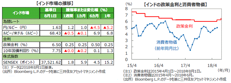 ■RBIは今回の会合で金融政策スタンスを中立に維持したものの、原油高や通貨安に加え、好調な経済成長が続くなか、来年に予定される総選挙をにらみ景気対策が打たれる可能性があることから、インフレ圧力の高まりと財政赤字拡大を警戒し、今後も追加利上げを行う可能性があります。