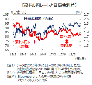 ■もっとも、豪州の堅調な景気の拡大や、日豪間の金融政策の方向性の違い(日銀は金融緩和姿勢維持、RBAは中立を維持)等を踏まえると、豪ドルは概ね底堅い展開が見込まれます。ただし、米国の通商政策には注意を払う必要がありそうです。