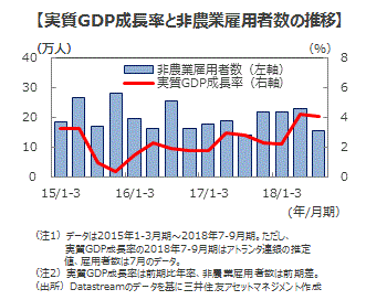 ■アトランタ地区連邦準備銀行が開発した経済モデルによれば、8月30日までに公表された経済指標をもとに推計した18年7-9月期の実質GDP成長率は、前期比年率+4.1%です。4-6月期は同+4.2%でしたので、米経済は引き続き力強く拡大していると言えます。