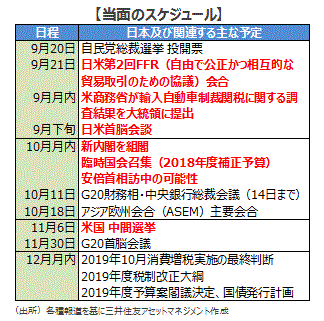 ■言い換えると、日本株式市場は好業績に支えられていますが、市場心理が好転しないため上値を抑えられている状況です。その中で自民党総裁選が行われますが、安倍総理が3選すれば一先ず市場には安心感が広がると思われます。自然災害からの復興もあり、総裁選後、新内閣は経済対策を優先することが期待されます。