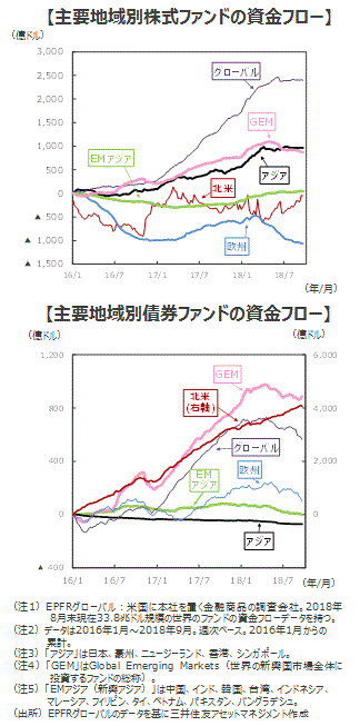 2018年9月は引き続き株、債券とも「北米」が流入超【デイリー】