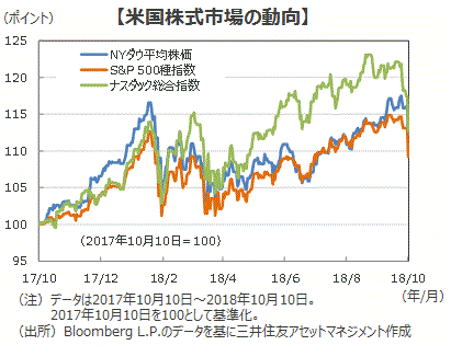 ■一方、企業業績は、米国で始まった7-9月期の業績発表に注目が欠かせません。今後の業況について、貿易摩擦の影響を含めて、企業がどのように考えているかが明らかになります。昨日の株価下落は、今後の業績修正リスクを一部織り込んだと考えられますが、それで十分か、注意深い観察が必要と見られます。