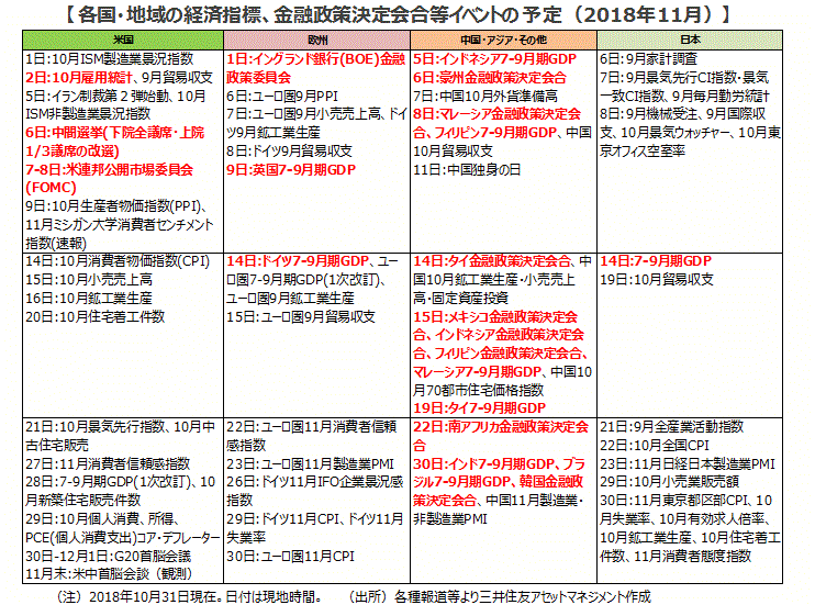 ■米中間選挙が11月6日に実施されます。出口調査による結果判明は日本時間で11月7日の夕方あたりになると見られます。下院が全議席(435議席)、上院が100議席のうち35議席が改選対象となります。中間選挙は共和党がどれだけ議席を失うかが焦点となり、いわばトランプ政権への信任投票の意味合いが強いと思われます。上院では共和党が過半数を維持し、下院では民主党が過半数に達するとの見方が多いようです。