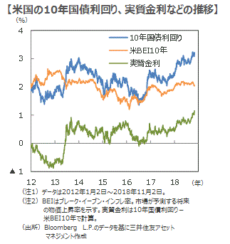 ■そうした中で、10月の株価調整につながった要因は大きく分けて二つあったとみられます。第一は、インフレというよりも景気が予想よりも堅調であることを主な理由に、パウエル議長をはじめFRB首脳が来年にかけて利上げ回数が増える可能性について言及したことです。それを受けて、米10年国債利回りは一時0.20%~0.25%上振れました。