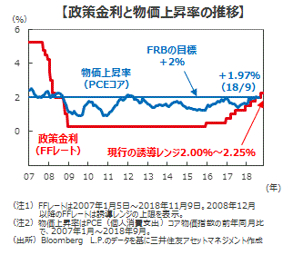 ■米国の連邦準備制度理事会(FRB)は、11月7日から8日にかけて開催した連邦公開市場委員会(FOMC)で、市場予想通り、政策金利であるフェデラルファンド(FF)レートの誘導レンジを、2.00%~2.25%で据え置くことを決定しました。