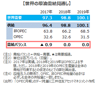 ■2019年の原油需給見通しによると、需給均衡のためには、OPECは生産量を、現行の生産枠である日量3,250万バレル(今年1~10月の生産実績は同3,251万バレル)よりも低い同3,151万バレルまで落とさなければなりません。12月のOPEC総会では、協調減産が焦点となりそうです。