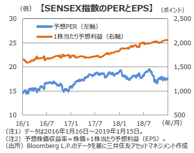 ■2019年のインド株式市場については堅調な展開を予想しています。国内経済の高成長が続くなかで企業業績の拡大が見込まれること、インフレが落ち着いていることで金融政策が緩和方向に向かう可能性があること、株価が割高水準にないこと、米利上げ打ち止めに伴い資金流入が期待されることなどが背景です。