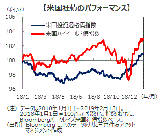 ■社債市場の反発は、米中関係改善および米中貿易摩擦緩和への期待や、米連邦準備制度理事会(FRB)による利上げ打ち止め観測の浮上等により、リスク回避の姿勢が後退したことによるものです。