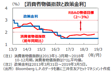 ■声明文では、世界経済については緩慢な成長が2019年に入っても続いているとの認識を示しました。豪州経済については、労働市場は依然強いが、インフレは低位で安定しているとの見方を示しました。その他の経済指標は2018年後半にかけて豪州経済が減速したことを示唆していると指摘しました。