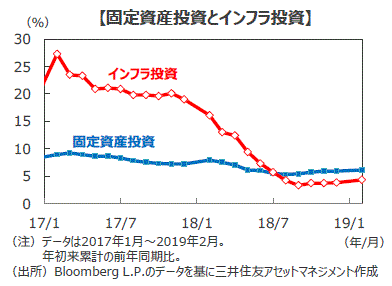 ■固定資産投資の内訳をみると、インフラ投資が同+4.3%と、昨年1~12月(同+3.8%)から伸び率が拡大しました。中国政府による景気刺激策の効果が表れ始めたとみられます。