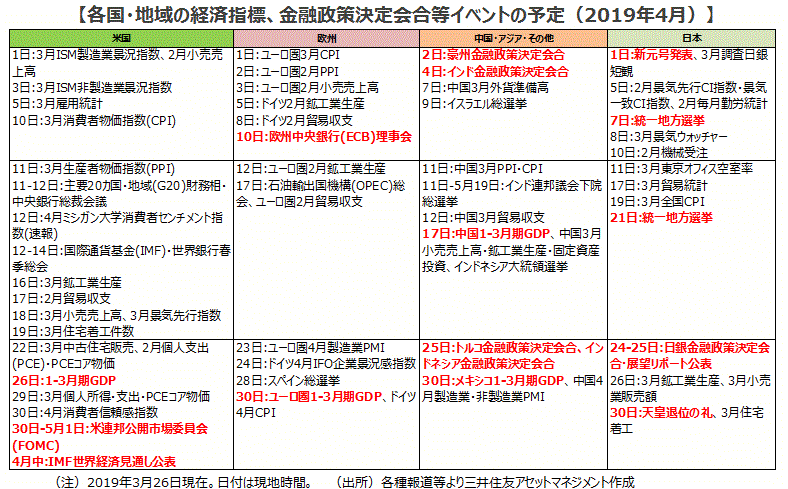 ■日本では、1日に新元号発表、30日には天皇退位の礼が行われます。月末からゴールデンウィークにかけては、新天皇即位に伴う大型連休も控えており、消費押し上げ効果が期待されます。