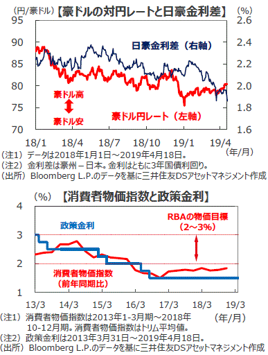 ■2019年の豪ドルの対円相場は方向感に乏しい動きが続いていましたが、4月に入って上昇しています。