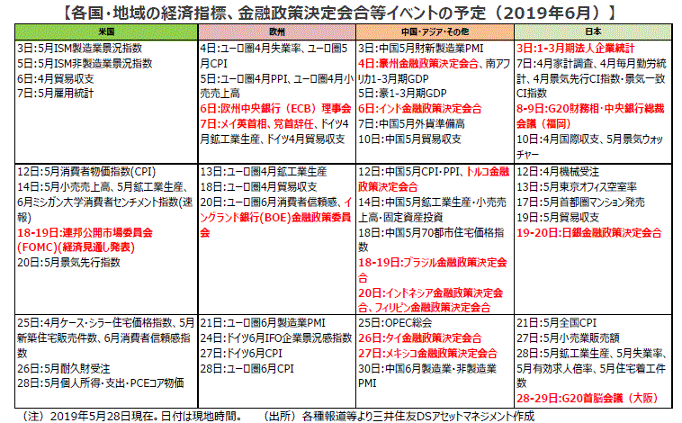 ■6月28-29日 主要20カ国・地域(G20)首脳会議:米中貿易摩擦は深刻化しています。28-29日に予定されるG20首脳会議(大阪)では、米中首脳会談が開催されるのかが注目されます。