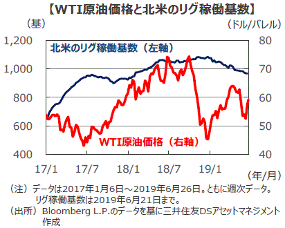 ■北米の代表的な原油価格であるWTI原油価格は、今年4月以降、軟調な動きとなっていましたが、6月に入って上昇に転じました。