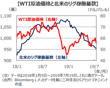 足元で下落に転じた原油価格(2019年7月)