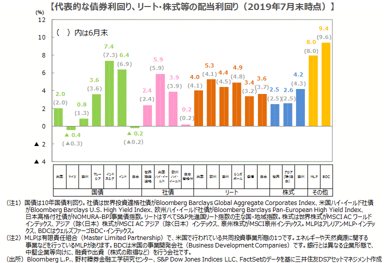 主要な資産の利回り比較(2019年8月)