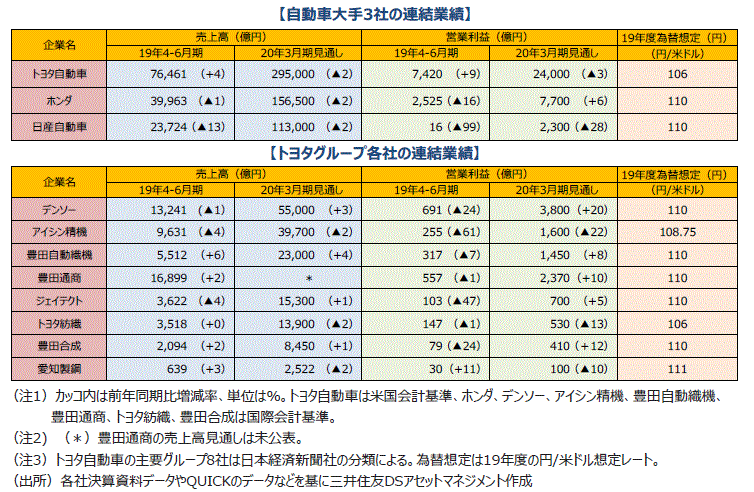 自動車業界の2019年度4-6月期決算は?