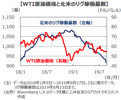■北米の代表的な原油価格であるWTI原油価格は、2019年4月以降、軟調な動きとなっています。