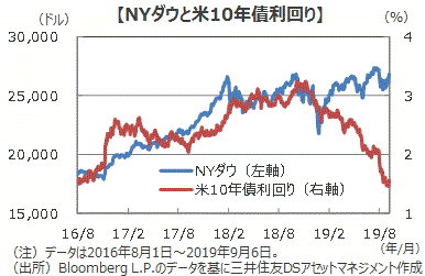 ■6日の米国金融市場では、株式、国債、米ドル共に、ほぼ横ばいで引けました。8月の雇用統計の内容が強弱まちまちだったほか、同じ日に、米連邦準備制度理事会(FRB)のパウエル議長がスイスの講演で、「景気拡大を維持するため引き続き適切に行動する」と表明し、市場が期待する9月の追加利下げを否定しない内容だったため、金融市場への影響が限定的なものになったと見られます。