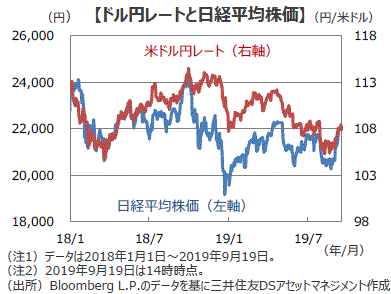 ■日銀が金融政策の現状維持を決めた背景には、足元で円安・株高の追い風が吹いていることがあります。対米ドルで一時104円台に上昇した円相場は、108円付近に下落していることに加え、日経平均株価が年初来高値圏にあるなど、追加緩和が要求される環境ではありません(19日14時時点)。