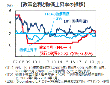 ■米連邦準備制度理事会(FRB)は、9月17日、18日に開催した米連邦公開市場委員会(FOMC)で、市場予想通り、政策金利であるフェデラルファンド(FF)レートの誘導目標レンジを2.00%~2.25%から1.75%~2.00%へ引き下げました。7月に続く今年2回目の利下げとなります。