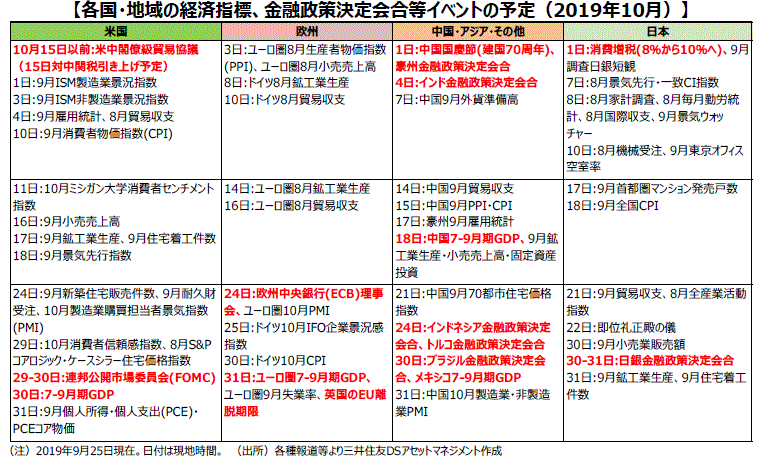 ホームマーケット日々のマーケットレポート2019年10月の注目イベント 米中貿易協議と米金融緩和の行方に注目
