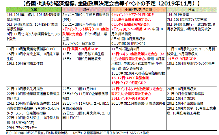 ■欧州では英国の10月末の「合意なき離脱」が回避される見通しとなりましたが、離脱の時期や協定の内容をめぐって英国議会とジョンソン首相の対立が続いており、総選挙になる可能性があります。11月は英国における協議の進展に注目が集まります。