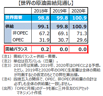 ■2019年の世界の原油需要は日量9,980万バレルと予想されており、需給の均衡にはOPEC加盟国で3,073万バレルの供給が必要と見られます。サウジの生産が回復し、OPECの原油生産量が8月の2,981万バレル程度で推移するとすれば、2019年は需要が供給をやや上回りそうです。