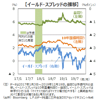 ■今回の予想PER18倍台は低金利が支えていると言えそうですが、今後はやはり業績の改善が重要です。業績予想の改善度合いを示すリビジョン・インデックスを見ると、2017年当時はプラス圏に浮上し、株価を下支えしました。現在(12月12日、4週間移動平均)は▲12.9で改善途上にあります。景況感の改善が強まり、増益期待が高まることによって、リビジョン・インデックスのプラス転換も可能です。米中の部分合意が円滑に履行され、業績の好転を伴えば、米国株式市場は予想PER18倍台を維持できると考えられます。