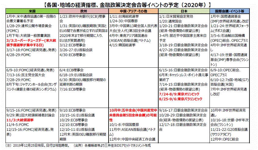■米国では、中国との第一段階の合意文書署名や日米貿易協定の発効など、貿易問題の進展が見られそうです。11月の大統領選挙に向けて、トランプ大統領の再選を目指す動きや、候補によって政策スタンスが大きく異なる民主党候補の選出に注目が集まり、金融市場も影響を受けそうです。