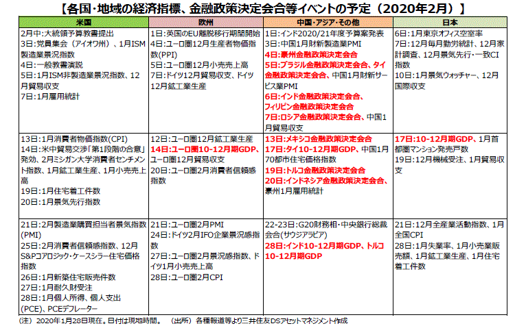 ■インドでは2月1日に2020/21年度予算案が発表されます。景気対策が盛り込まれることが期待されており、その内容が注目されます。一方、6日の金融政策決定会合では政策金利の据え置きが予想されています。